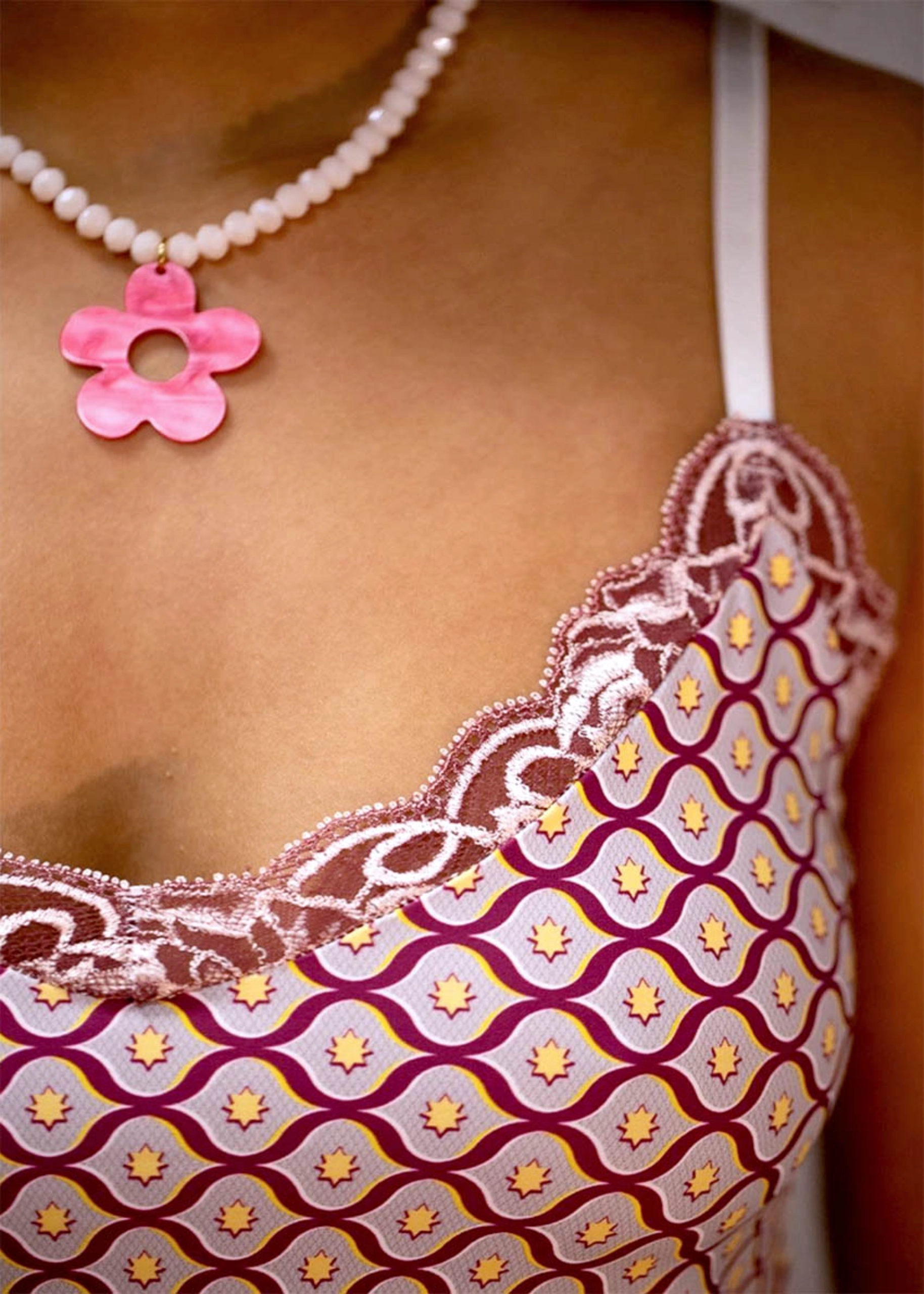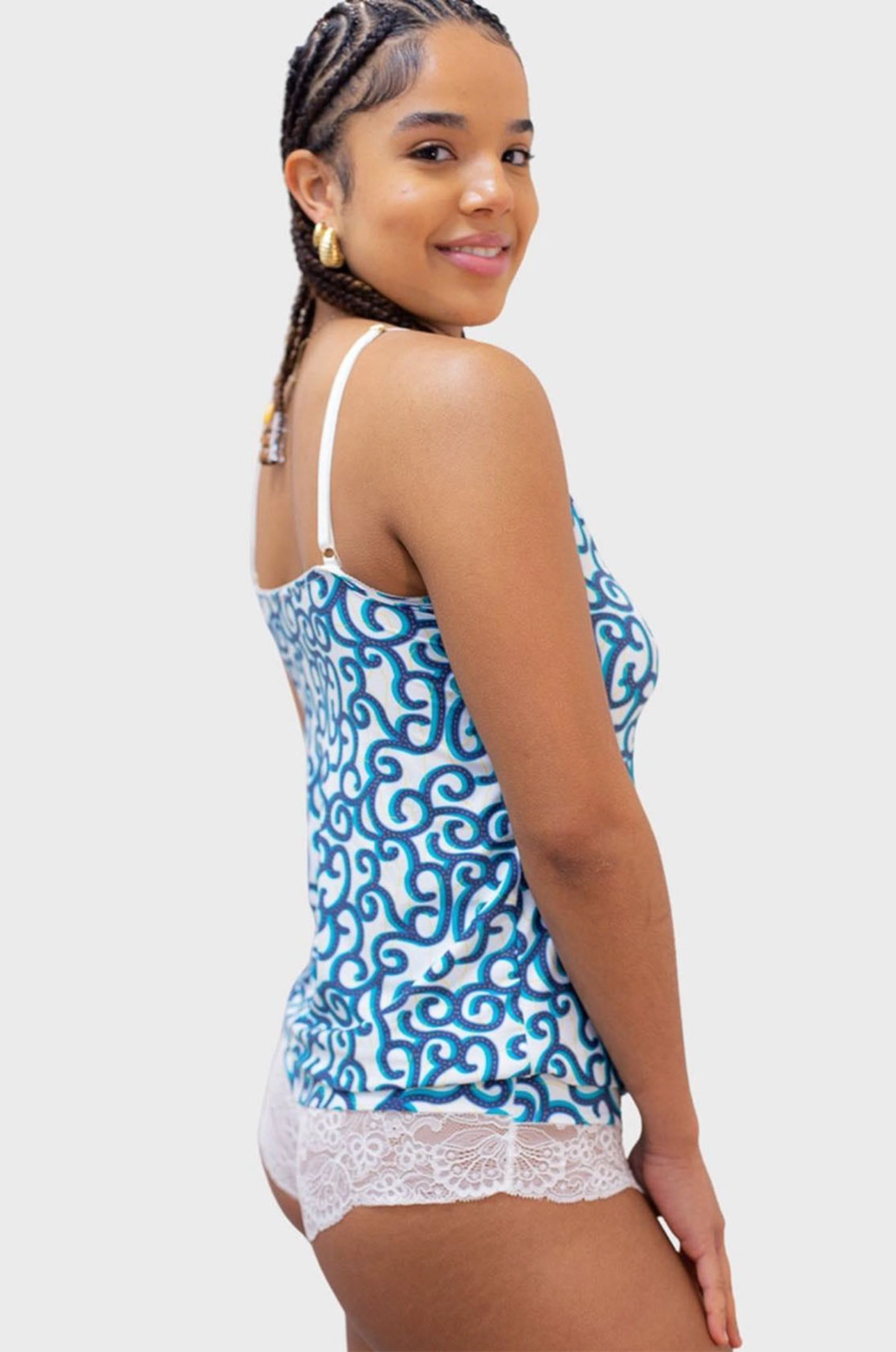 Pour Aklomissa, j’ai imaginé et développé les motifs textiles exclusifs qui incarnent ce voyage entre la Côte d’Ivoire et la France. Des imprimés pensés comme le point de départ des collections, avant d’être transformés en lingerie par le jeu des matières, de la dentelle et des coupes.