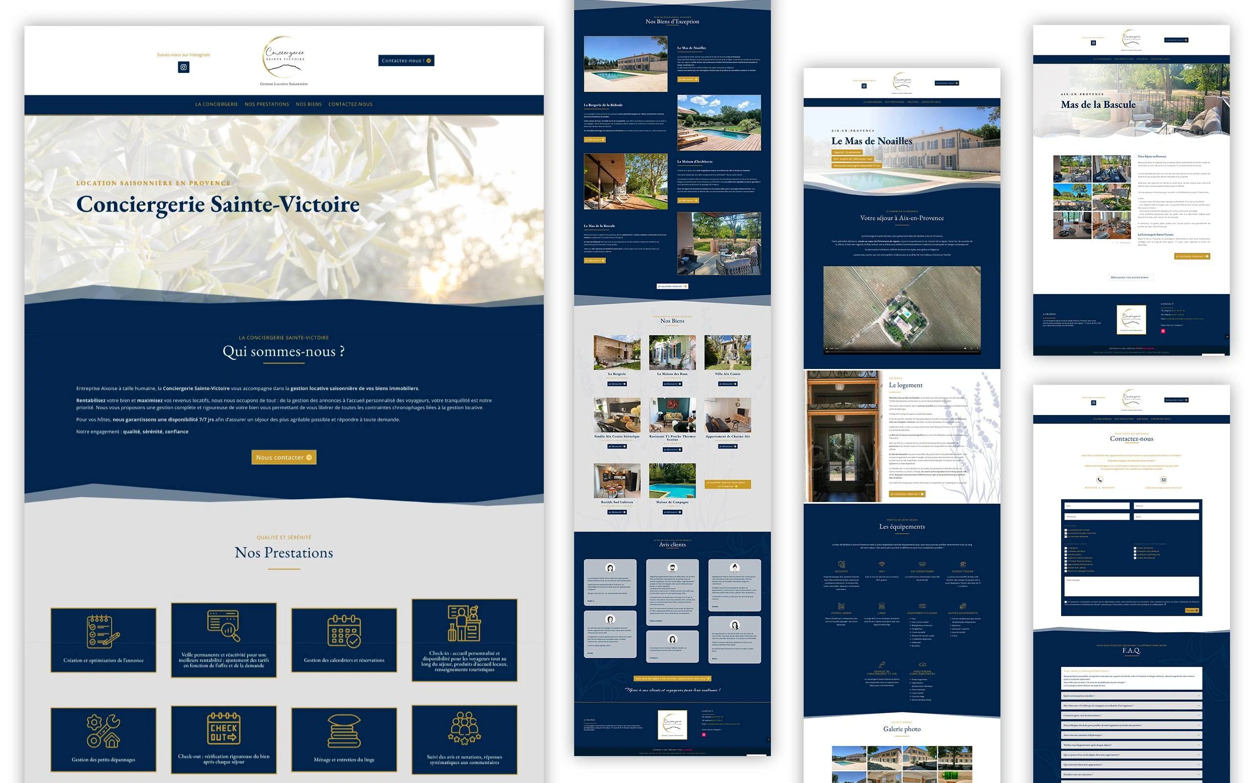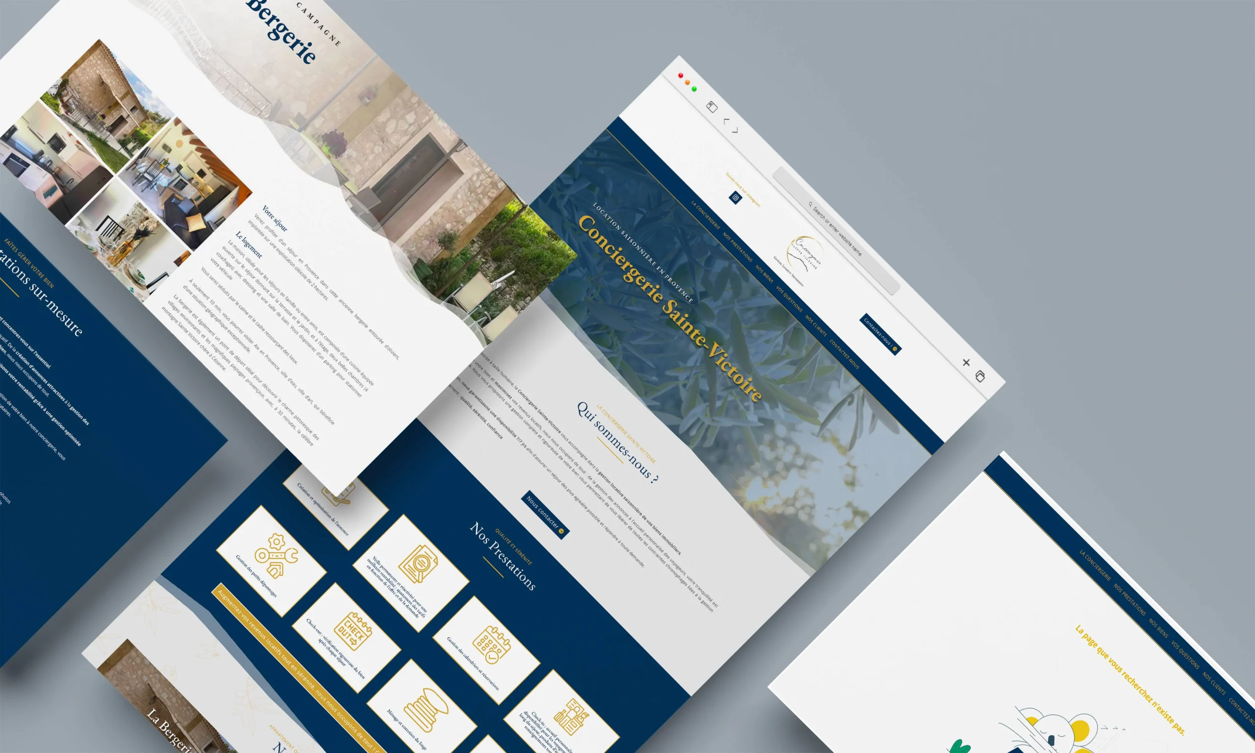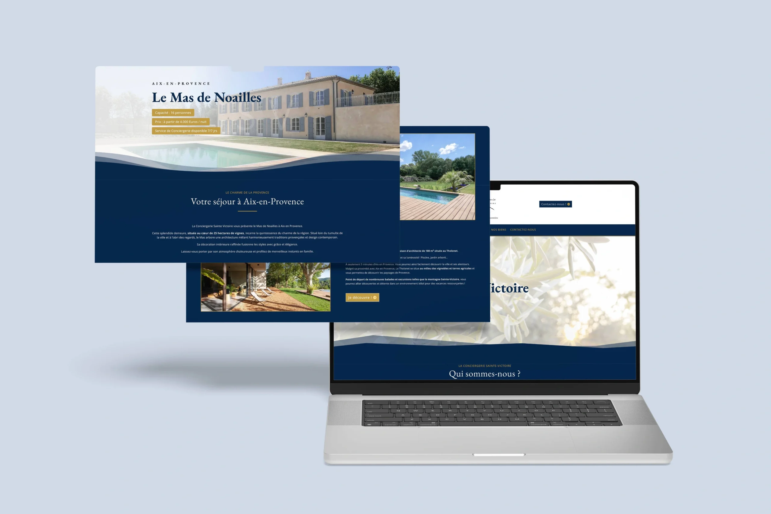Entre art de vivre provençal et exigence de service, la Conciergerie Sainte-Victoire souhaitait une identité digitale à la hauteur de son positionnement. Une conciergerie pensée pour simplifier la vie des propriétaires, tout en offrant aux voyageurs une expérience fluide et qualitative.