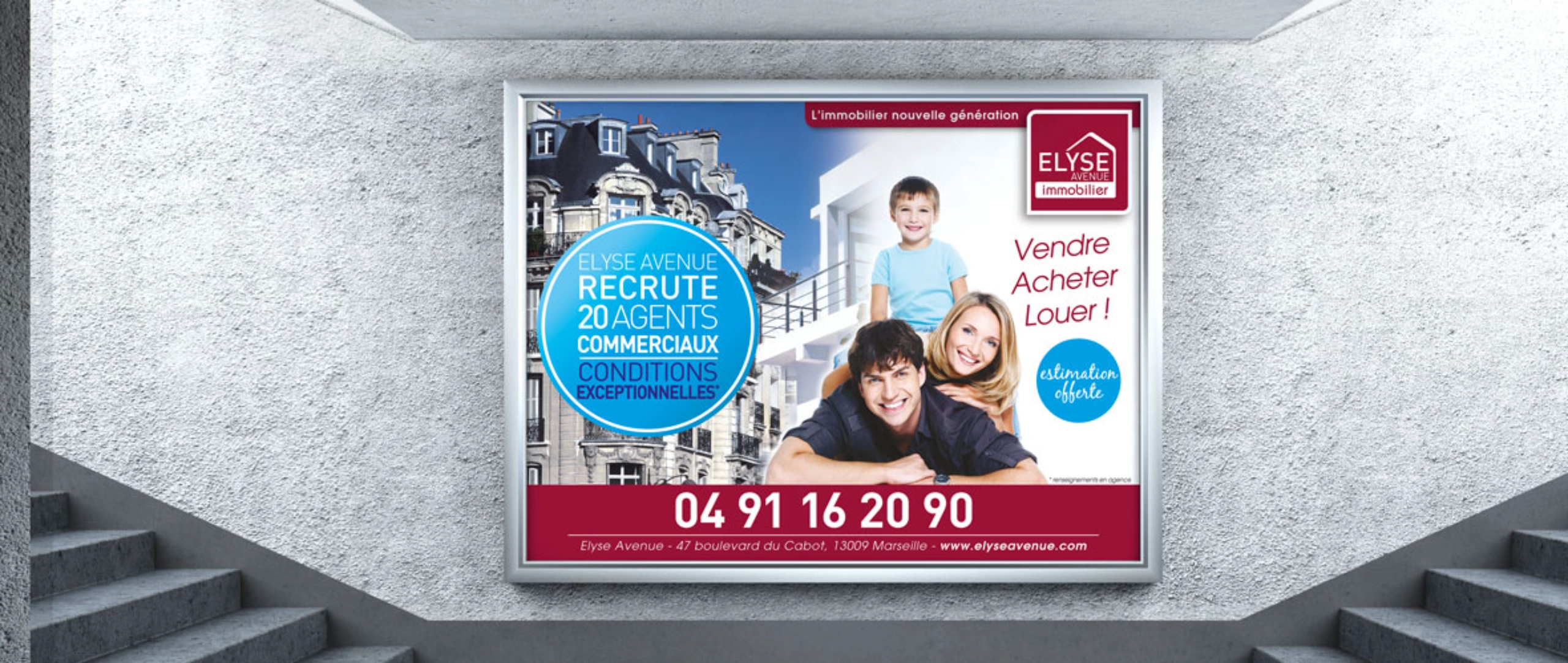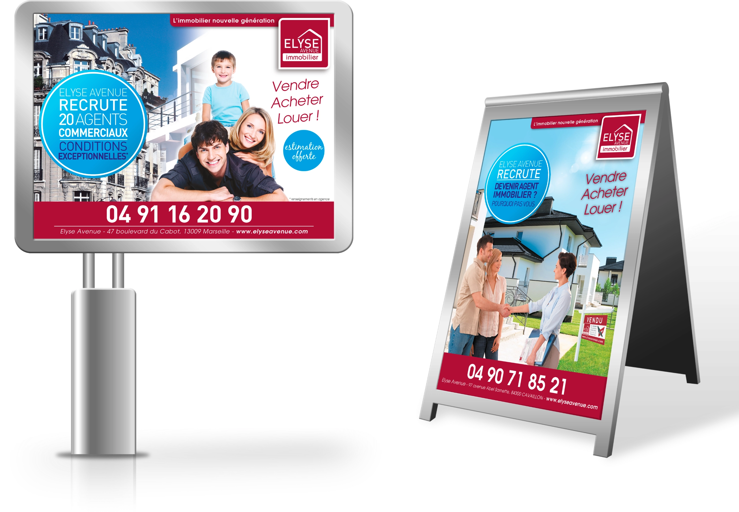 - Création de visuels publicitaires pour différents formats : affiches agence, stop-trottoirs, affichage grand format
