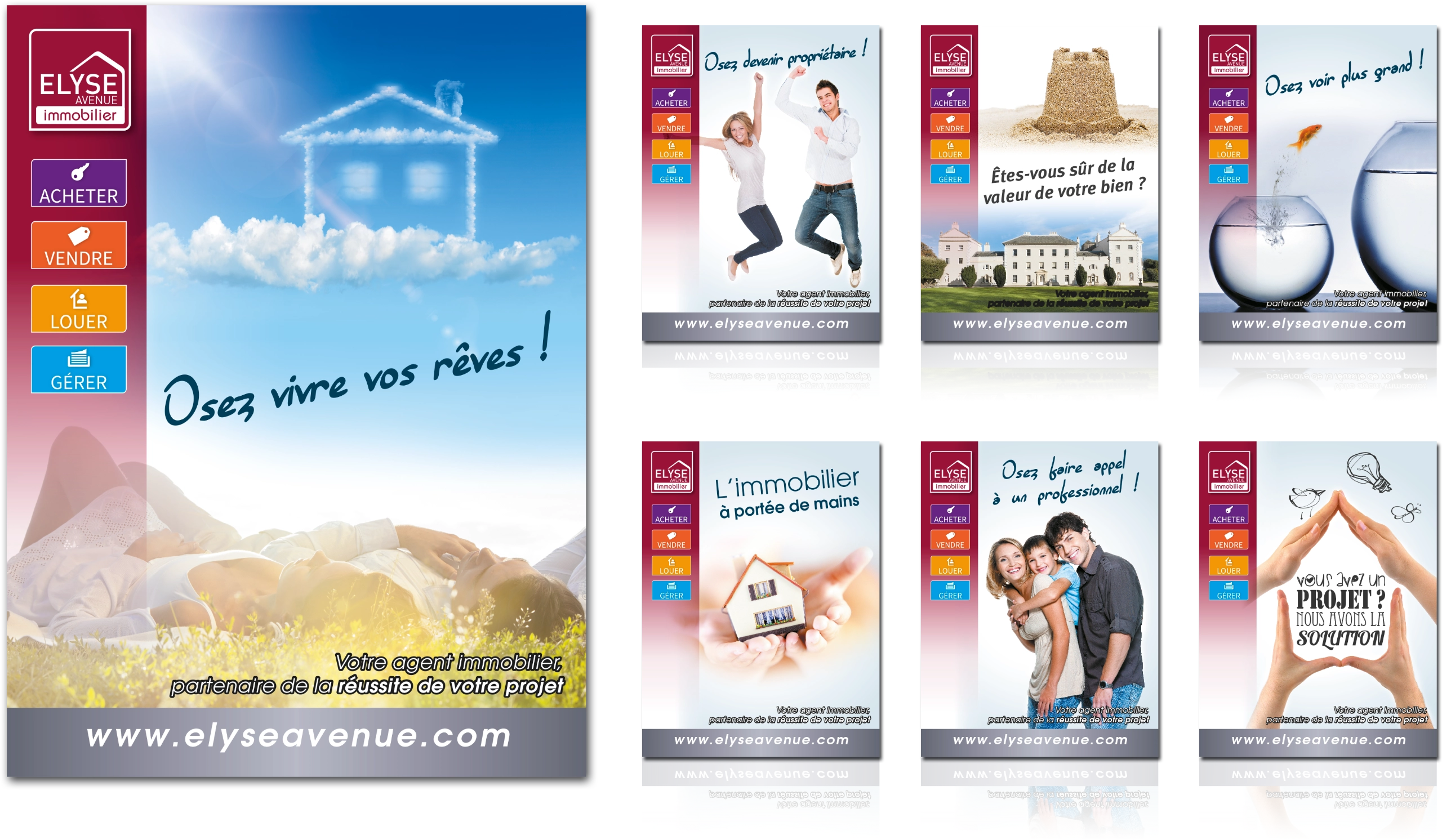 Un accompagnement graphique pensé pour un réseau immobilier exigeant, où chaque support renforce la communication locale et l’identité globale.