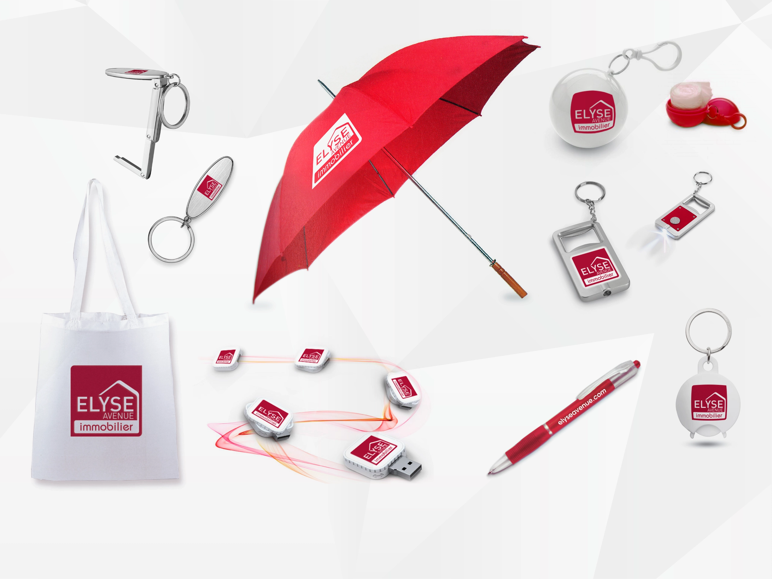 - Design de goodies publicitaires : sacs, stylos, porte-clés, objets promotionnels