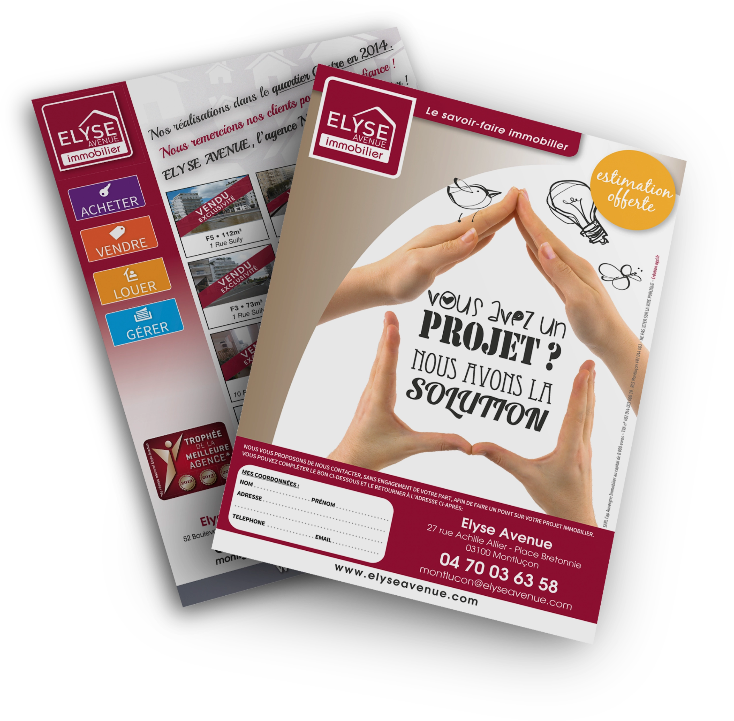 - Conception de papeterie professionnelle : cartes de visite, mandats de vente, pochettes, cartons d’invitation